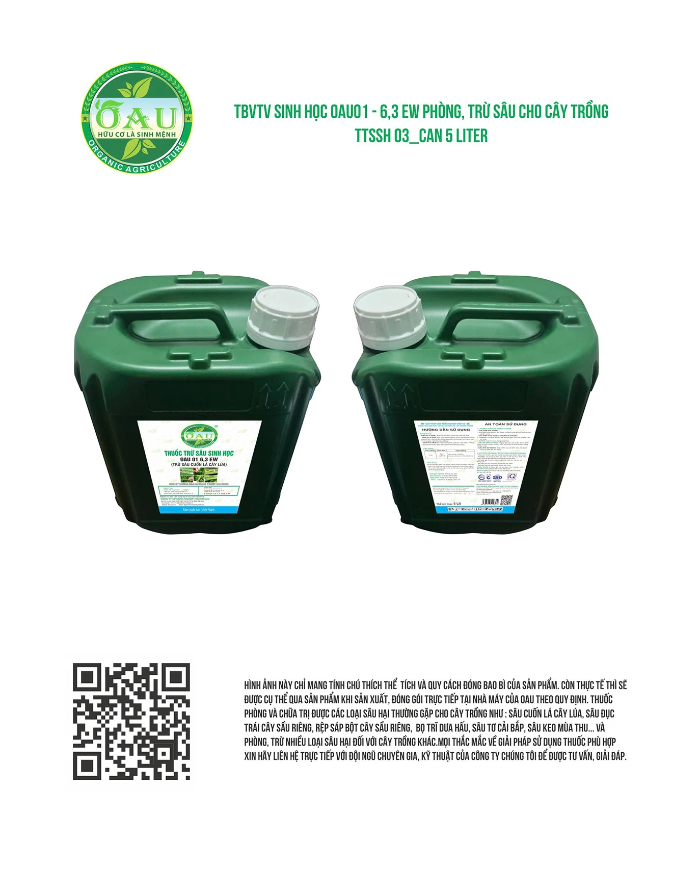 TBVTV sinh học OAUO1 – 6,3 EW là chế phẩm thuốc bảo vệ thực vật sinh học dạng nhũ dầu (EW – Emulsion in Water) dùng để phòng và trừ các loại sâu hại trên nhiều loại cây trồng. Sản phẩm được nghiên cứu nhằm tăng hiệu quả kiểm soát côn trùng gây hại nhưng vẫn đảm bảo an toàn cho cây trồng, người sử dụng và môi trường.